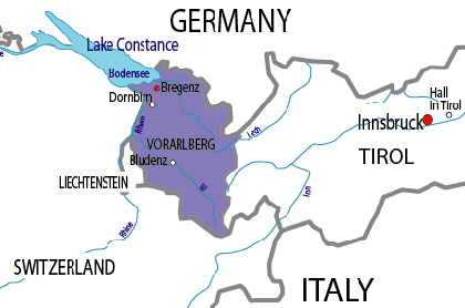 Vorarlberg is the western most state of Austria and is somewhat isolated from the rest of Austria by it's mountains. The land borders Bavaria to the north,