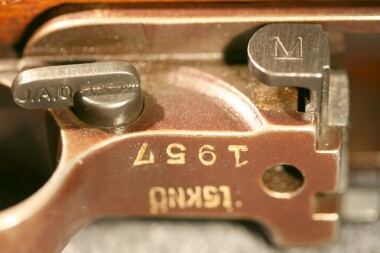 Trigger guard has last 4 digits of serial number individually stamped on rear "T", bottom of trigger housing forward of trigger guard is stamped LGKNÖ with 1957 underneath the letters. The 1957 would be the inventory number assigned by the Austrians.