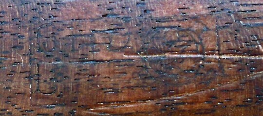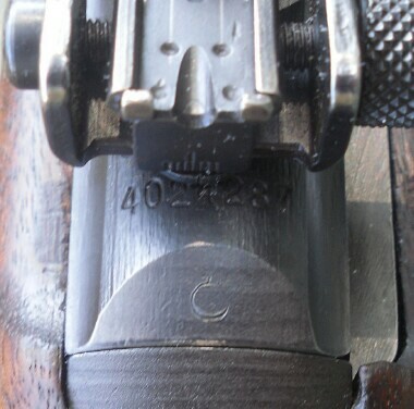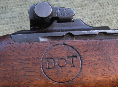 Stock has last 4 digits of serial number stamped in the slingwell. Large DOT in circle on right side of stock, meaning not known.