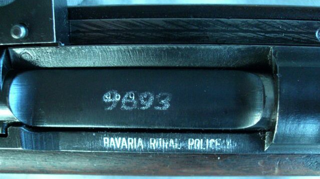 barrel, barrel band, Bavaria Rural Police, and markings on the trigger housing are consistent with the appearance of this