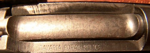 Bavaria Rural Police on top of the receiver to the left of the bolt.