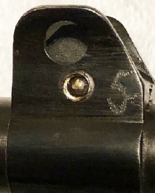 The example shown above and below has the number 5 engraved on a half dozen parts of this carbine. Not enough examples of U.S. carbines used by Hessen have been examined to determine if this was common throughout Hessen or only done by the Border Police. U.S. carbines polished to a bright blue with various parts numbered with a single digit unrelated to the serial number have been observed among the U.S. carbines used by the gendarmerie in the Austrian land/state of Upper Austria. One example had a recoil plate with the markings of the Hessen Border Police (HE-B). It is not known if the gendarmerie in Upper Austria also polished the finish to a bright blue and added a single digit to various parts or if the carbines had been purchased from Hessen. It's also possible some of the carbines used by Hessen were returned to U.S. inventory then later reissued to the Austrian gendarmerie. The example shown here was not used by Austria.