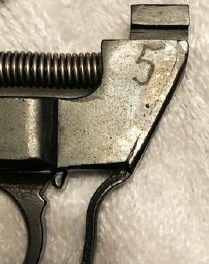 Placing the serial number on parts was often something decided by an agency's armorer or regional armorer in an effort to keep the parts with the firearm they were on. The Germans used this protocol as most of their weapons required hand fitting certain parts. They were initially unaware of the interchangeability of the parts on any U.S. carbine. The single digit shown on the HE-B carbine above served the same purpose.