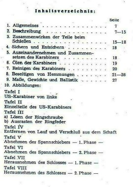 In September 1954, the Hessen Ministry of the Interior published a User Manual for Hessen police officers for the M1 carbine. The manual is approximately 3" wide x 4.5" tall with 35 pages covering the function, operation, disassembly, cleaning, and care of the M1 carbine. Eight of the pages are excellent illustrations depicting the carbine parts, names (in German).