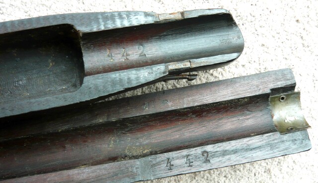 The last 3 digits of the serial number are stamped inside the stock and handguard...