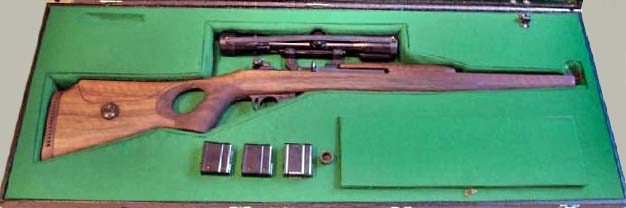 The author indicates that in Hessen and in other parts of West Germany in 1972 there were still large numbers of U.S. M1 carbines in use by and/or available to the police. A supervisor at the Hessen Police armory acquired the Diavari 1.5 - 6 x 36 by Zeiss from the commercial market. He also arranged for the manufacture of a thumbhole Mannlicher type stock by Wolfe. The stock was made from high quality walnut. It was described as luxurious. Hessen made 30 of these carbines. "A few" of the carbines were placed in special gun cases lined with green felt with the interior form fitted to the carbine. The case interior included compartments for magazines and accessories. These carbines were no longer used after 1974/1975, due to the changes implemented after the incident at Munich. (7)